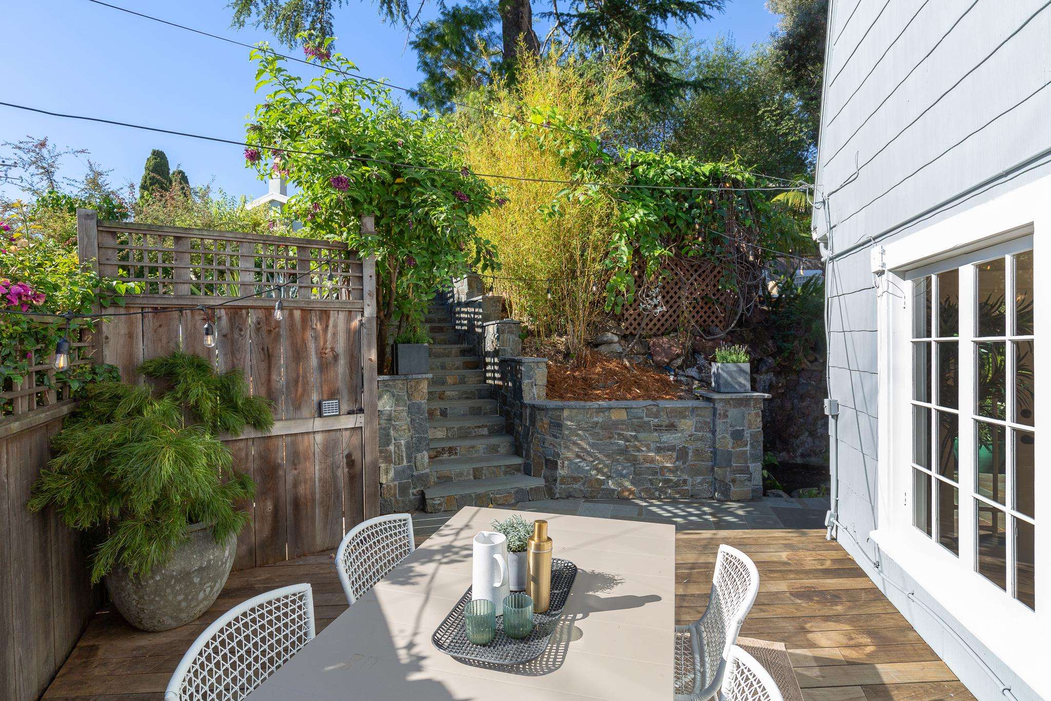Welcome to 495 Jean Street, a thoughtfully upgraded Dutch Colonial tucked in Oakland’s sought-after Grand Lake neighborhood. Built in 1917 and fully remodeled in 2013—with a new foundation, roof, plumbing, electrical, and heating systems—this home blends timeless character with peace of mind. Since then, the owner has created a backyard sanctuary with a Japanese soaking tub, tranquil pond, and multiple private patios that make the most of every corner of the lot. On the main level, enjoy an inviting flow between the living and dining rooms, updated kitchen, and sunroom. Two sets of French doors connect the indoors with the garden, creating a natural gathering place for both quiet mornings and lively evenings with friends.